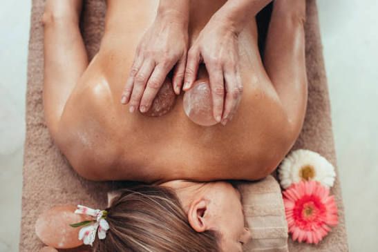 Pink Himalayan salt rock massage uses warm, hand-carved salt crystals to deeply relax muscles, reduce stress, and improve sleep. These stones, rich in 84+ minerals, provide light exfoliation and, when heated, promote detoxification and improved circulation. They can be used for deep tissue work or gentle, soothing therapeutic sessions.